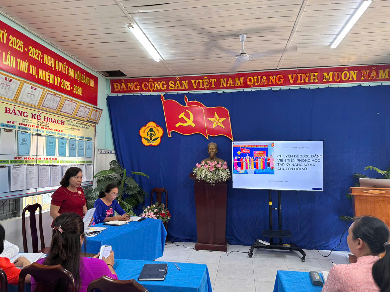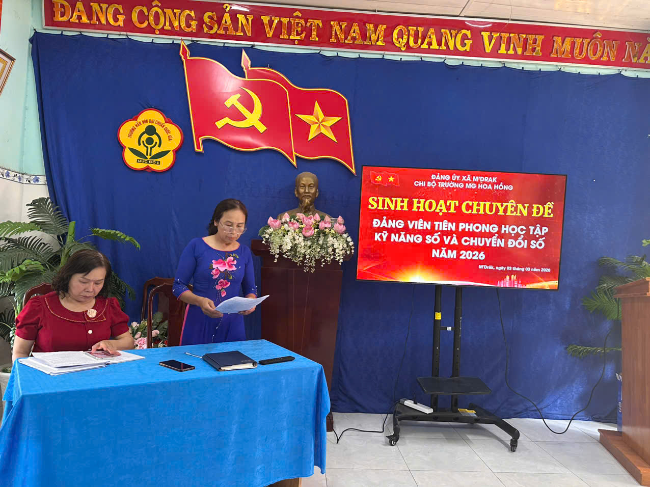 Ngày 03/3/2026, Chi bộ Trường Mẫu giáo Hoa Hồng đã tổ chức buổi sinh hoạt chuyên đề với nội dung “Đảng viên tiên phong trong học tập kĩ năng số và chuyển đổi số”. Buổi sinh hoạt nhằm nâng cao nhận thức, phát huy vai trò gương mẫu của đội ngũ đảng viên trong việc ứng dụng công nghệ thông tin và thực hiện chuyển đổi số trong hoạt động của nhà trường.