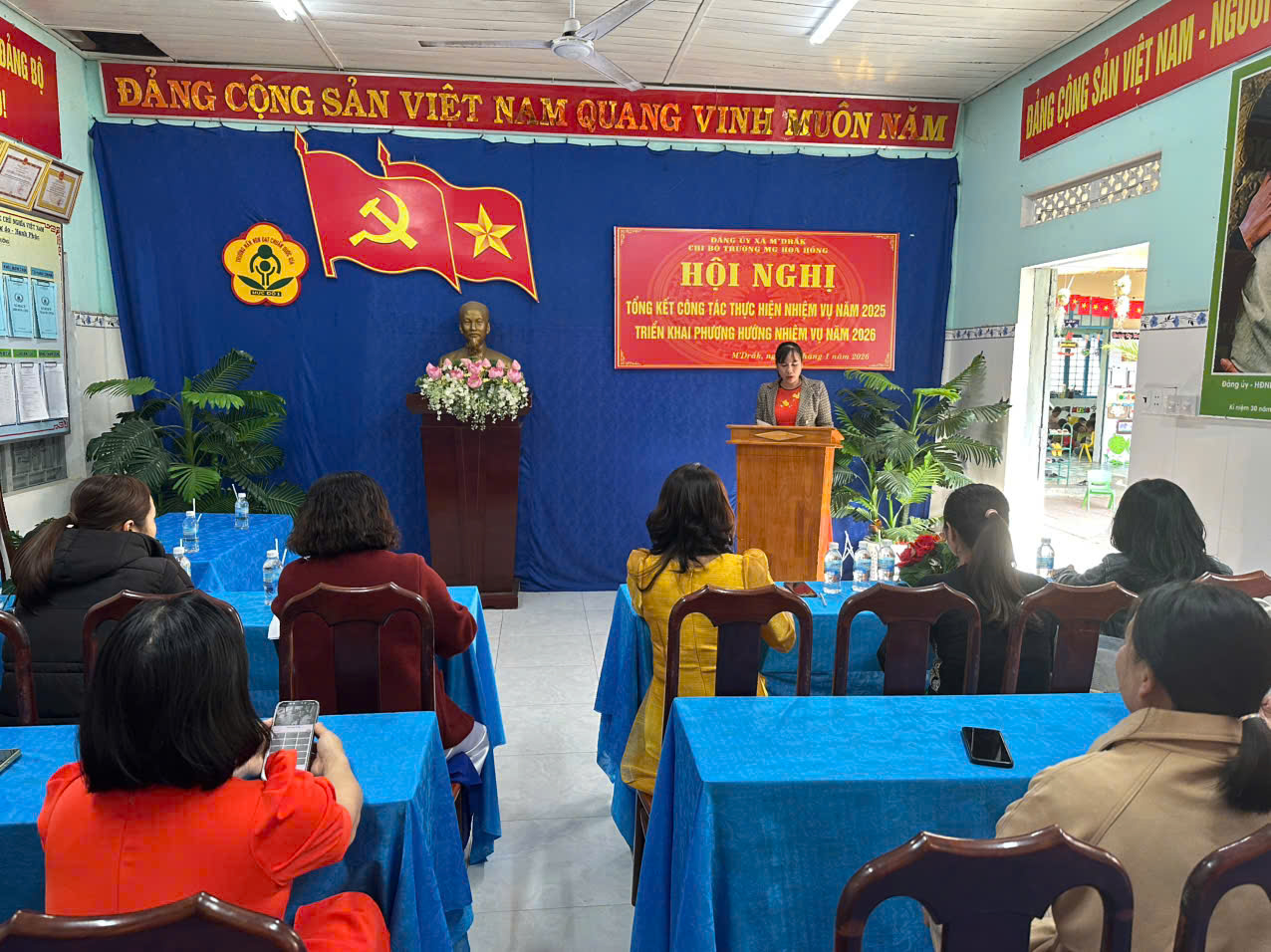 Hội nghị tổng kết công tác Đảng năm 2025 và triển khai nhiệm vụ năm 2026 của Chi bộ Trường Mẫu giáo Hoa Hồng là dịp quan trọng nhằm nhìn nhận, đánh giá kết quả đã đạt được, đồng thời tạo động lực để toàn thể cán bộ, đảng viên tiếp tục nỗ lực phấn đấu, góp phần xây dựng nhà trường ngày càng phát triển vững mạnh.