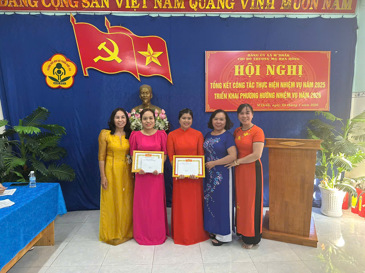 Thực hiện chương trình công tác năm 2025. Ngày 09 tháng 01 năm 2026, Chi bộ Trường Mẫu giáo Hoa Hồng đã tổ chức Hội nghị tổng kết công tác Đảng năm 2025 và triển khai phương hướng, nhiệm vụ năm 2026. Hội nghị được tổ chức trong không khí nghiêm túc, dân chủ, thể hiện tinh thần trách nhiệm cao của toàn thể đảng viên trong Chi bộ.