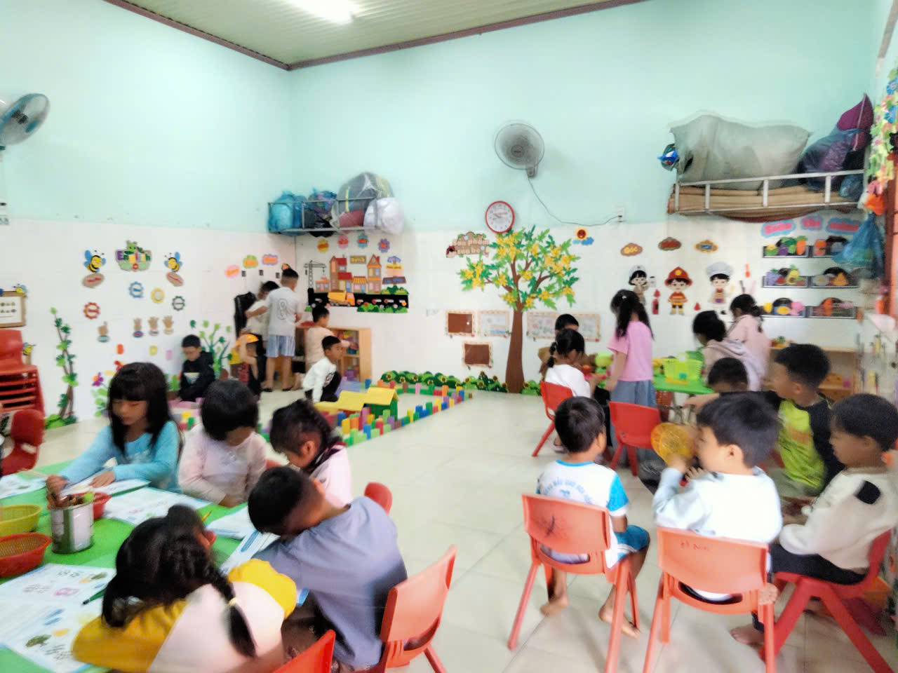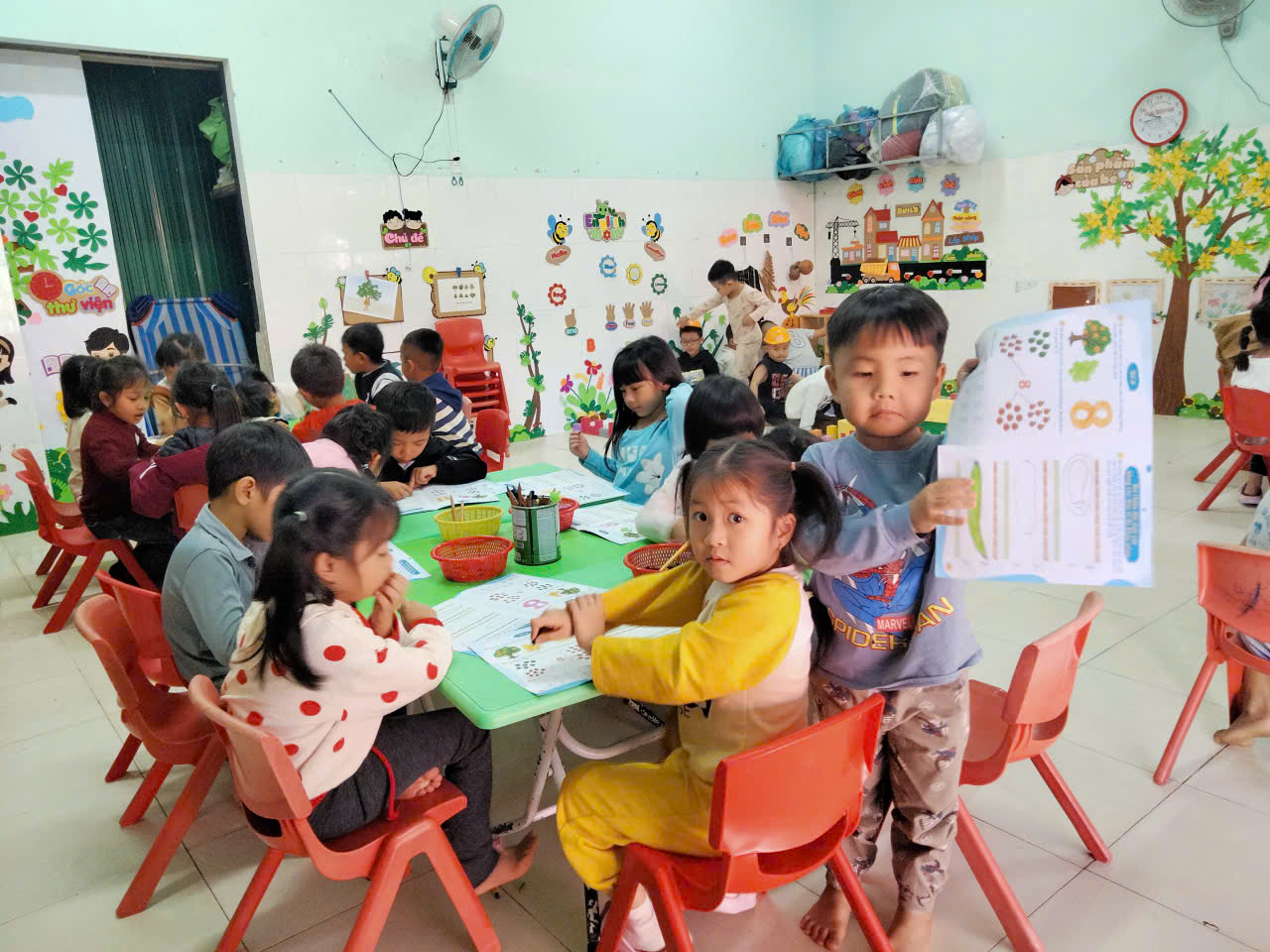 Với không gian lớp học được trang trí sinh động, đồ dùng – đồ chơi an toàn, gần gũi, các con luôn hào hứng, tích cực tham gia hoạt động. Giáo viên đóng vai trò quan sát, hướng dẫn, tạo điều kiện để mỗi trẻ đều được trải nghiệm và thể hiện bản thân.