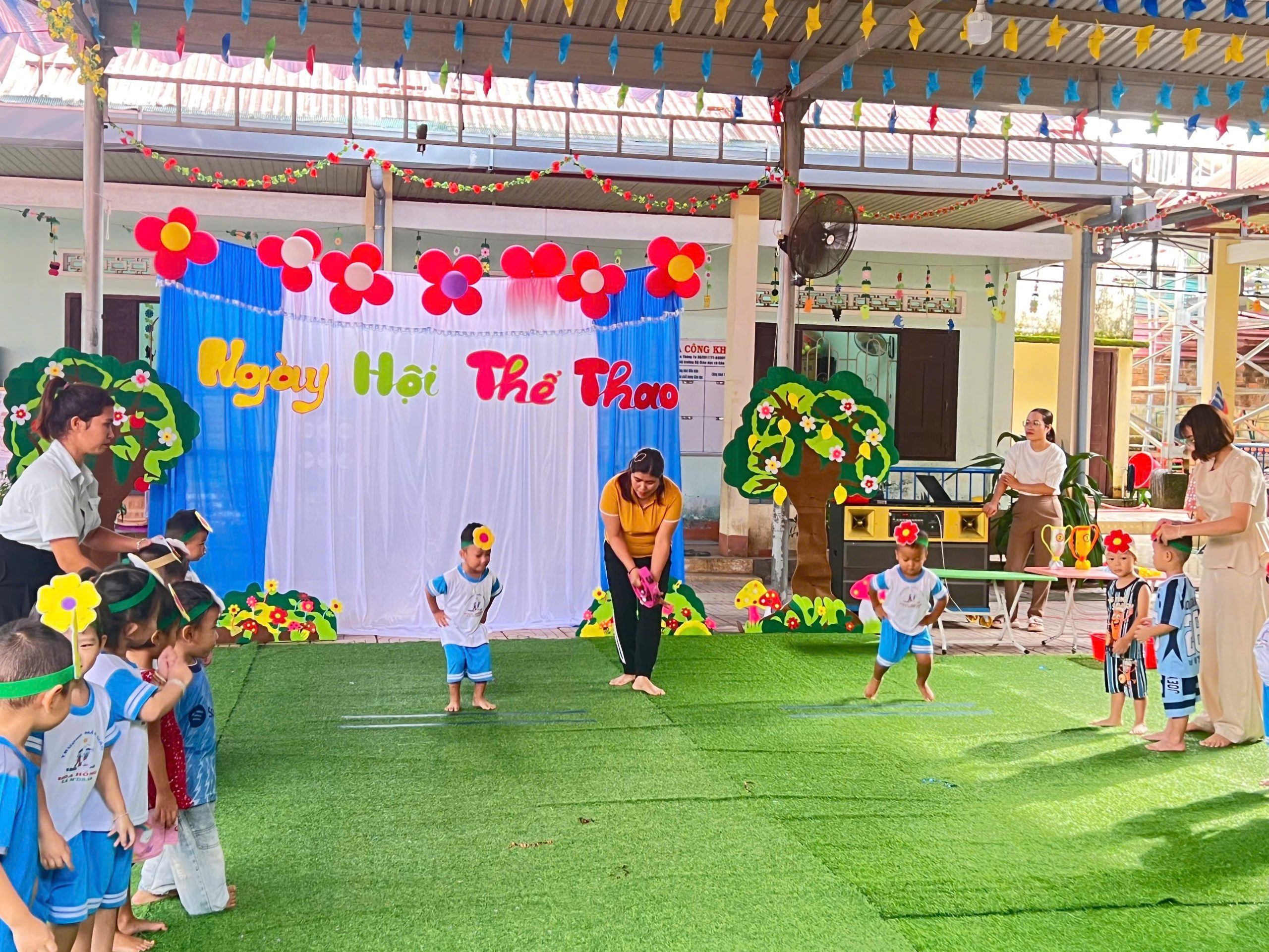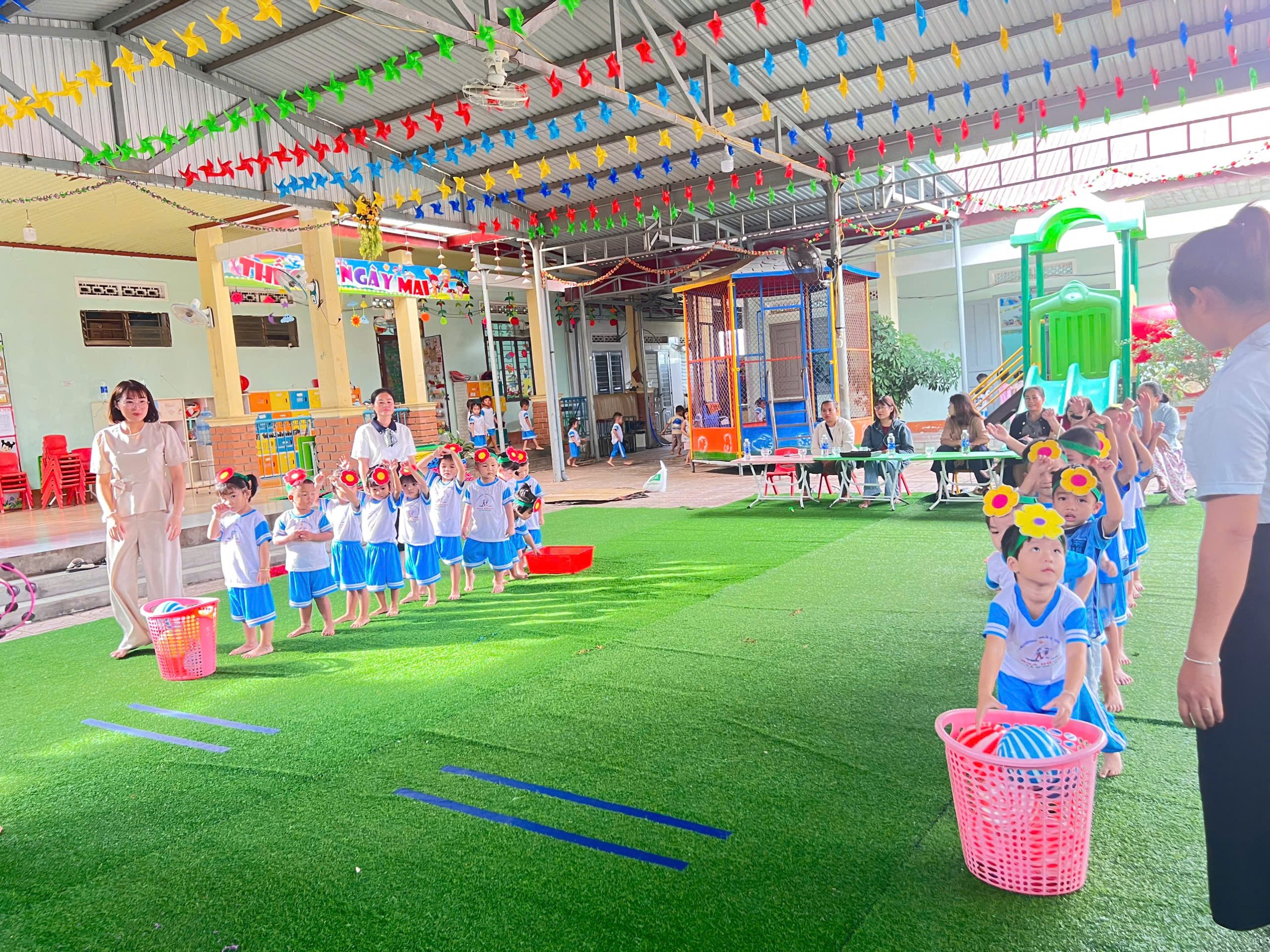 - Tiết hoạt động PTTC: Bật xa 25cm do cô Nhan Thị Lệ My Niê lớp mầm 2 thể hiện đã mang đến một không khí thật là sôi nổi, hào hứng, Rèn cho trẻ sự nhanh nhẹn, bền bỉ khi thực hiện các vận động phát triển cơ chân và khi tham gia chơi trò chơi , phát triển khả năng chú ý khi thực hiện.
